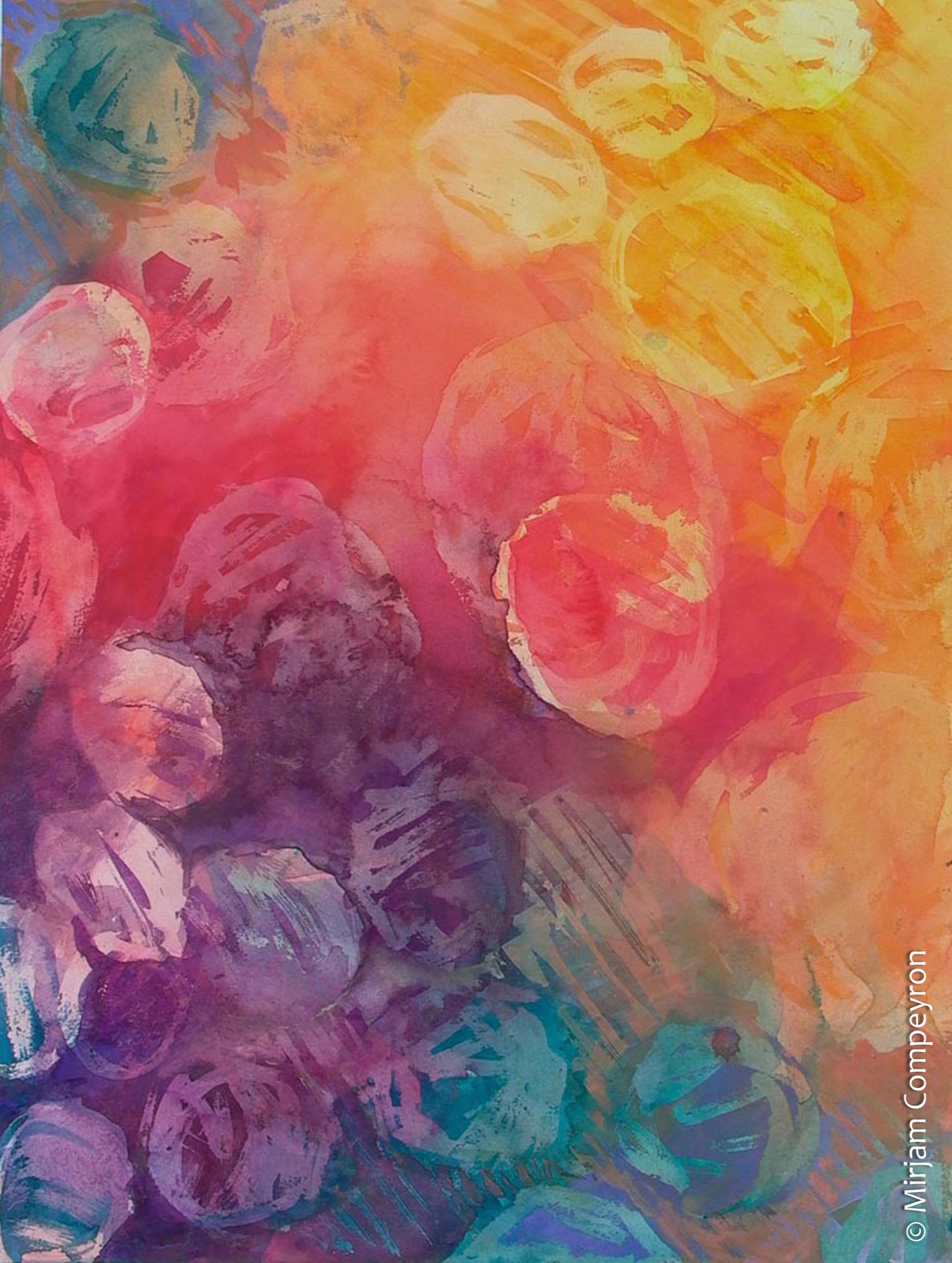 Mischtechnik: Monotypie und Graphit auf schwerem Kunstdruckpapier